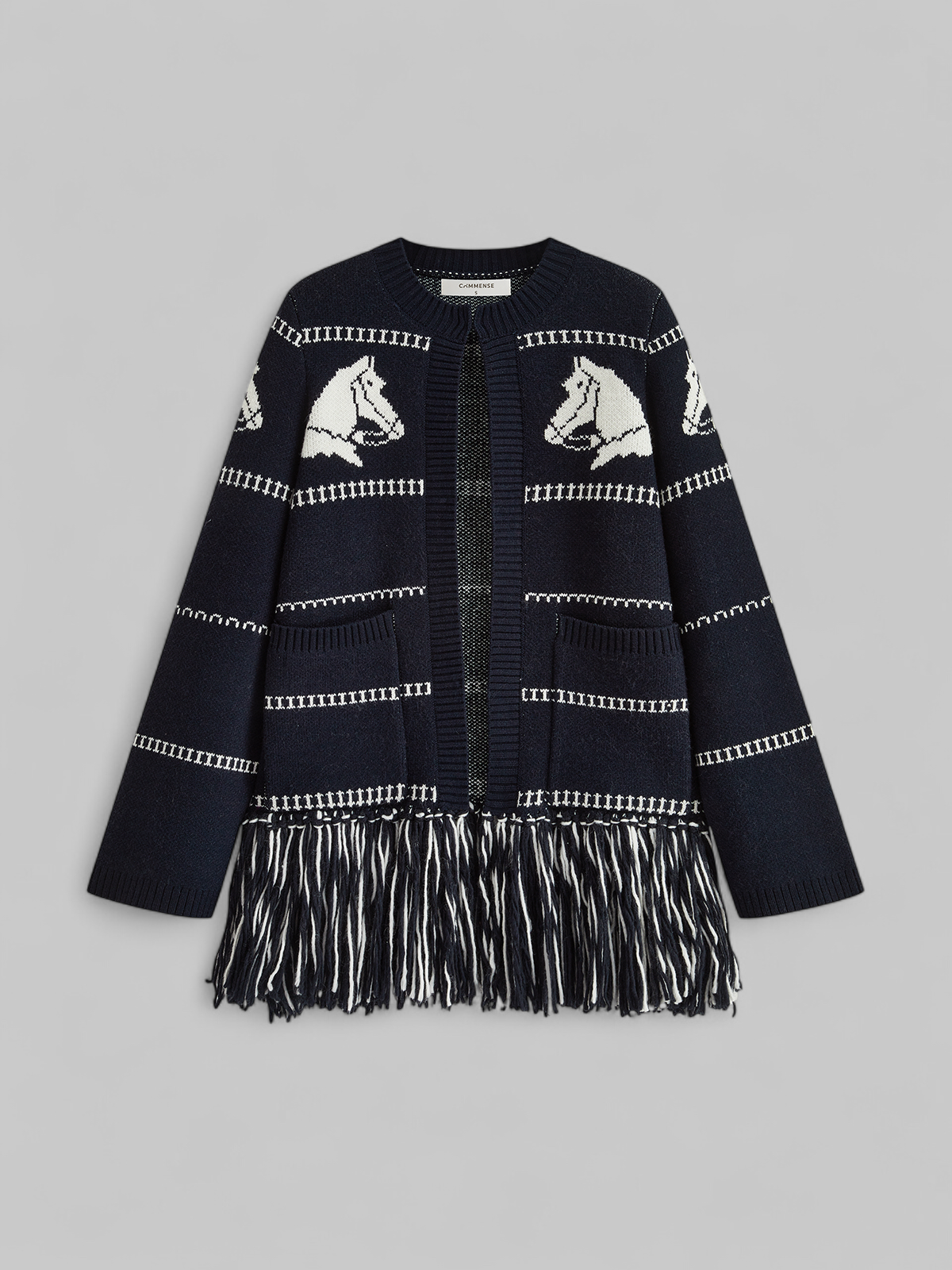 Pourquoi ce cardigan à franges motif équestre est indispensable dans votre garde-robe.
